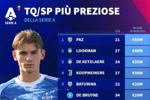 5、巴图里纳(科莫):22岁,2000万欧