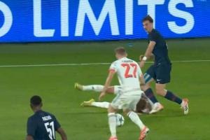 体育资讯11月05日讯 欧冠联赛阶段第4轮,巴黎对阵拜仁。44分钟,基米希争抢中倒地,随后头部被法比安踢到,裁判没有表示。