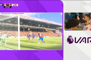英超官网对此次事件的描述是:基耶萨近距离低平球射入近角,VAR正在检查萨拉赫在进攻过程中是否存在手球。最终进球有效,没有证据证明手球。